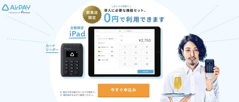 キャンペーン :飲食店業種限定で0円でiPad贈呈キャンペーン(他業種はカードリーダー0円キャンペーン)
