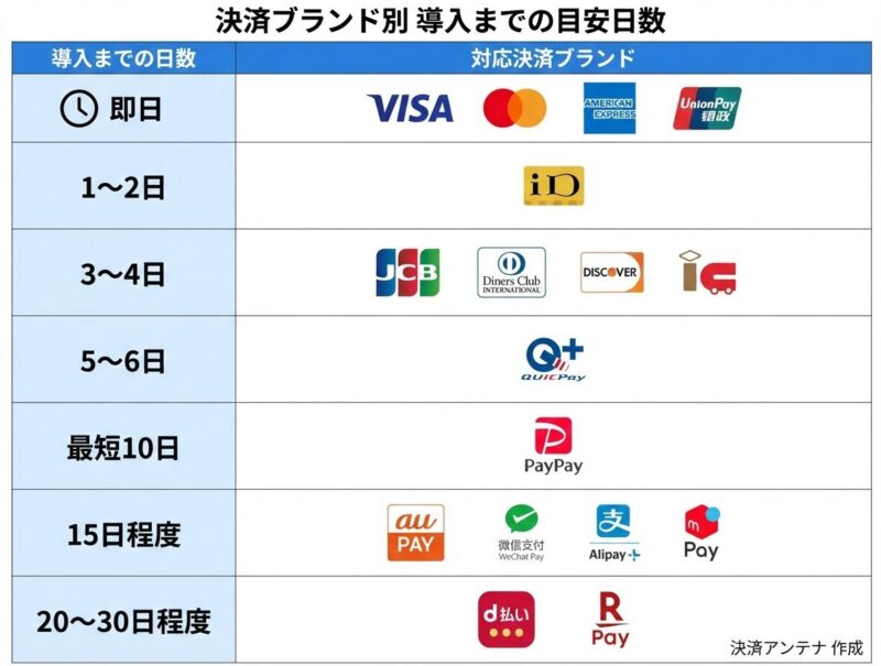 「最短即日」で利用できるのは一部の主要ブランドに限られており、すべてのブランドが使えるようになるまでには、もう少し時間が必要です。